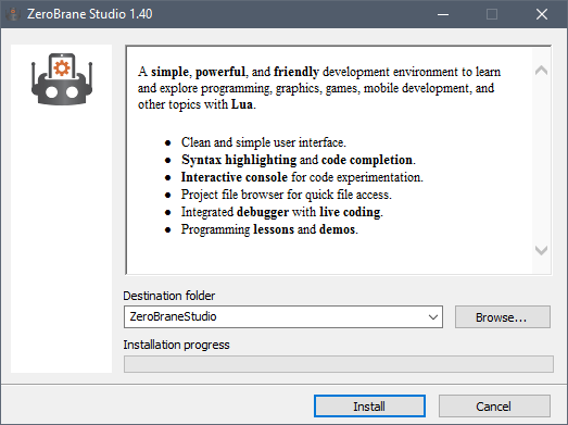 Open the installer, and install ZeroBrane Studio in your preferred folder.
